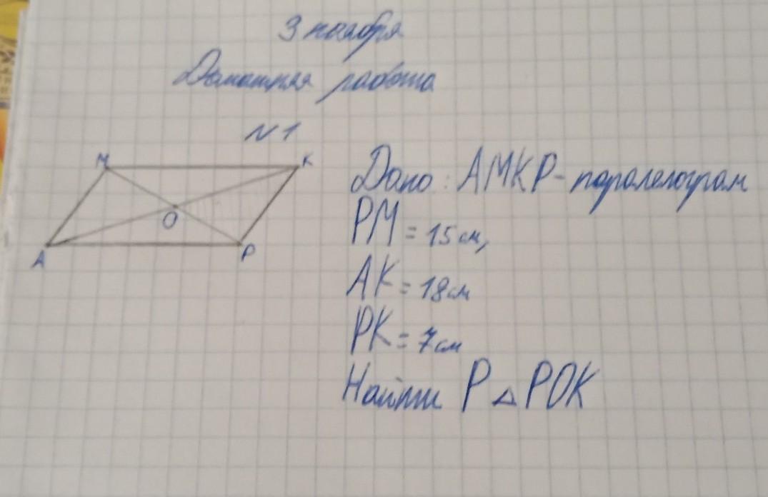 Половина угла РМ=7,5см, половина угла АК=9см и целый угол РК