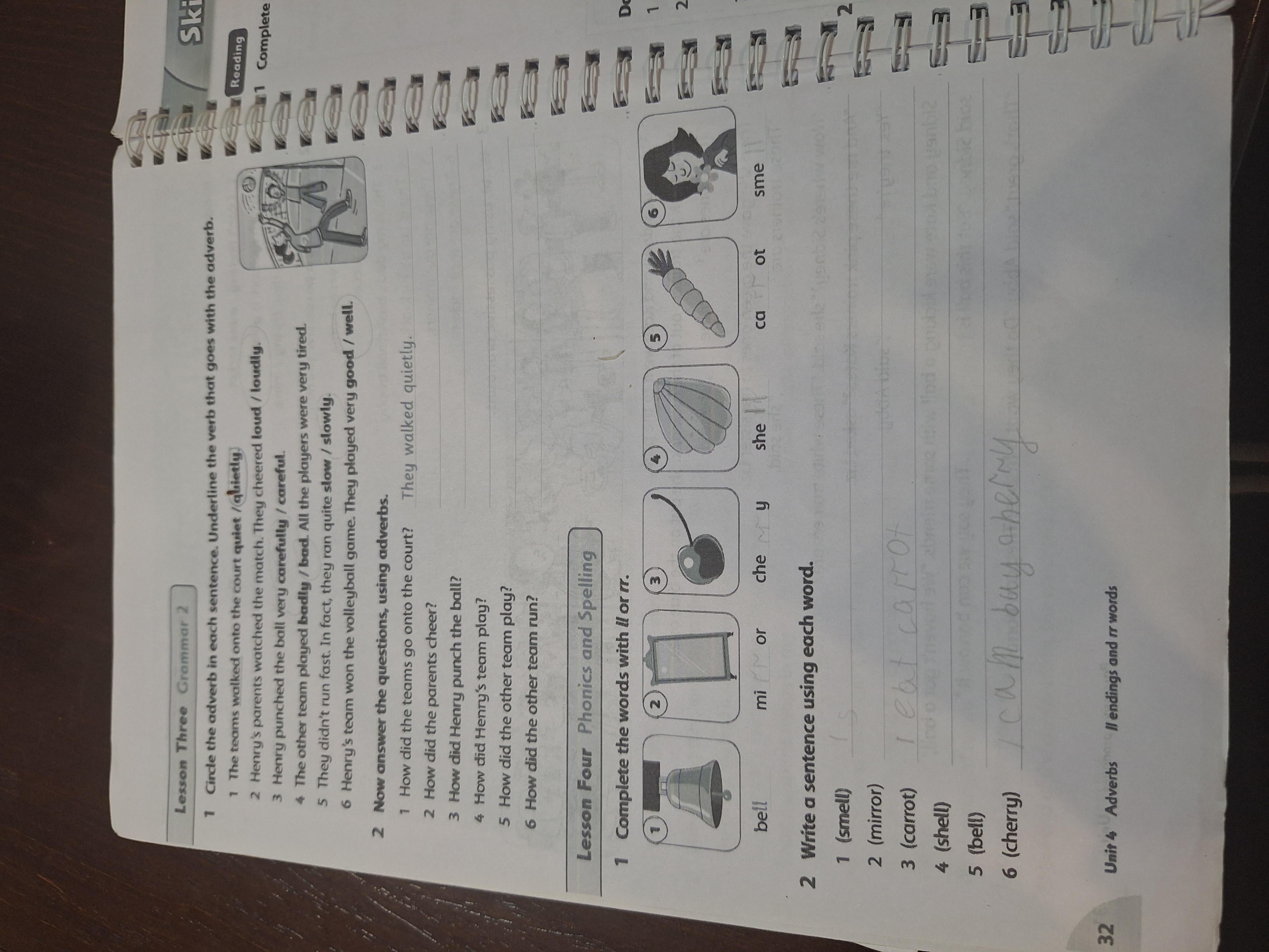 1. Circle the adverb in each sentence. Underline the verb that goes with the adverb.