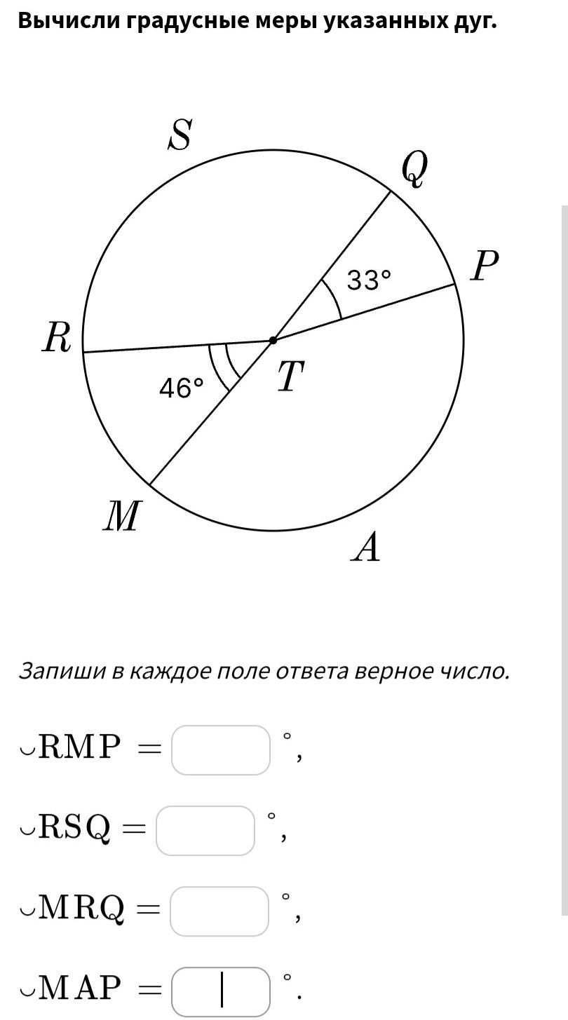 MQ — диаметр, значит U MRQ = U MAQ = 180°