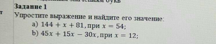 б) Подставляем также вместо х 12 получается 45*12+15*12-30*12= 540+180-360=630-360=360