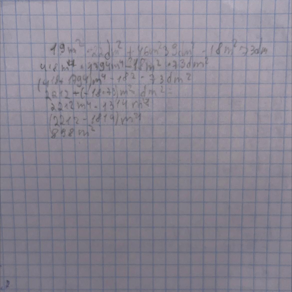 Нужна помощь с задачей по 19m²22dm²+46m²39dm²-18m²73dm²=? Получите подробные решения и обсуждения от других участников для школьников студенческий. Ответы на этот вопрос уже добавлены. Мы приглашаем вас задать свой вопрос и стать экспертом для других.