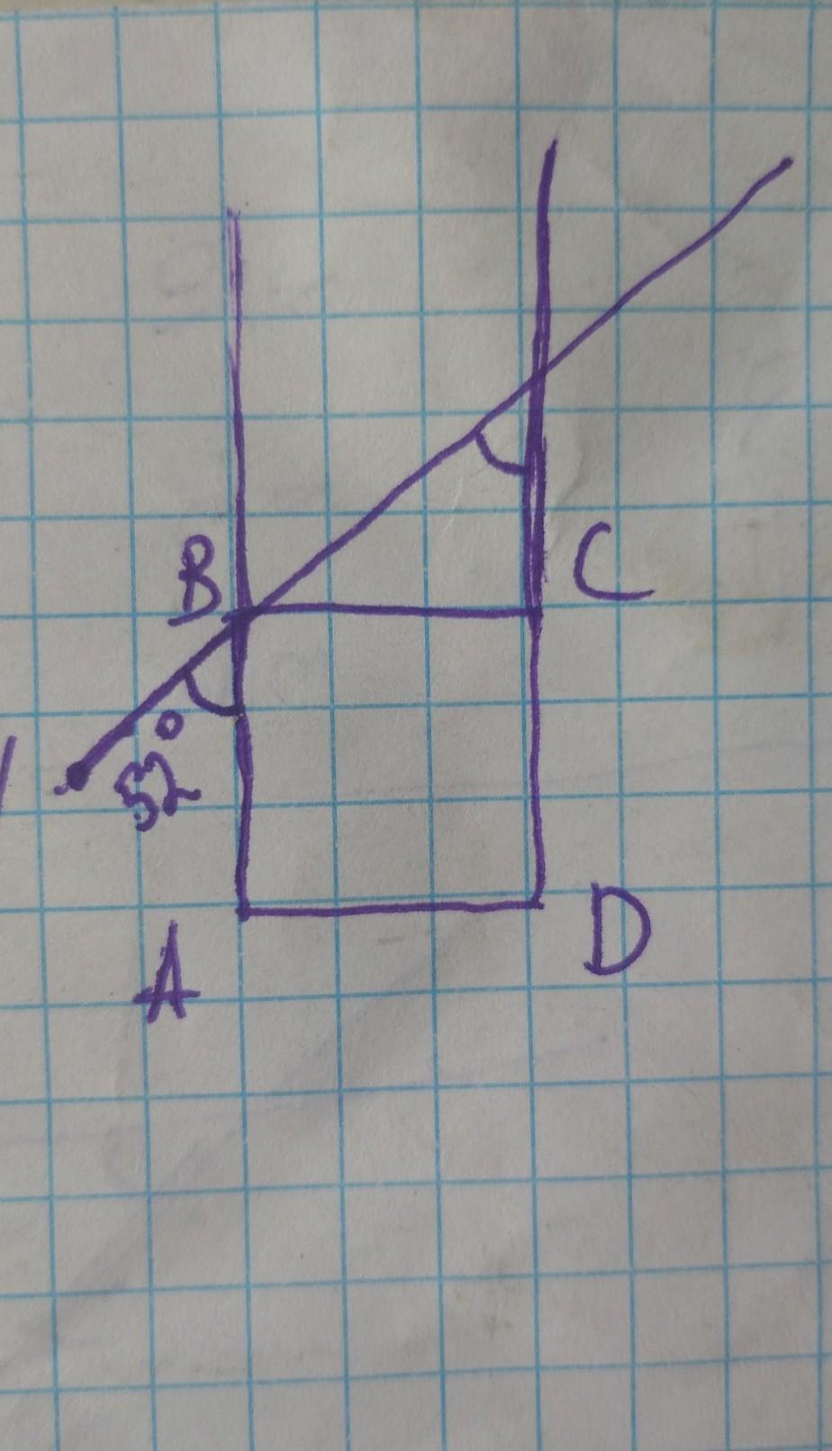 ДОПОМОЖІТЬ! точка N не належить площині квадрата abcd, кут NBA=52°. Знайдіть кут між прямими NB і CD
