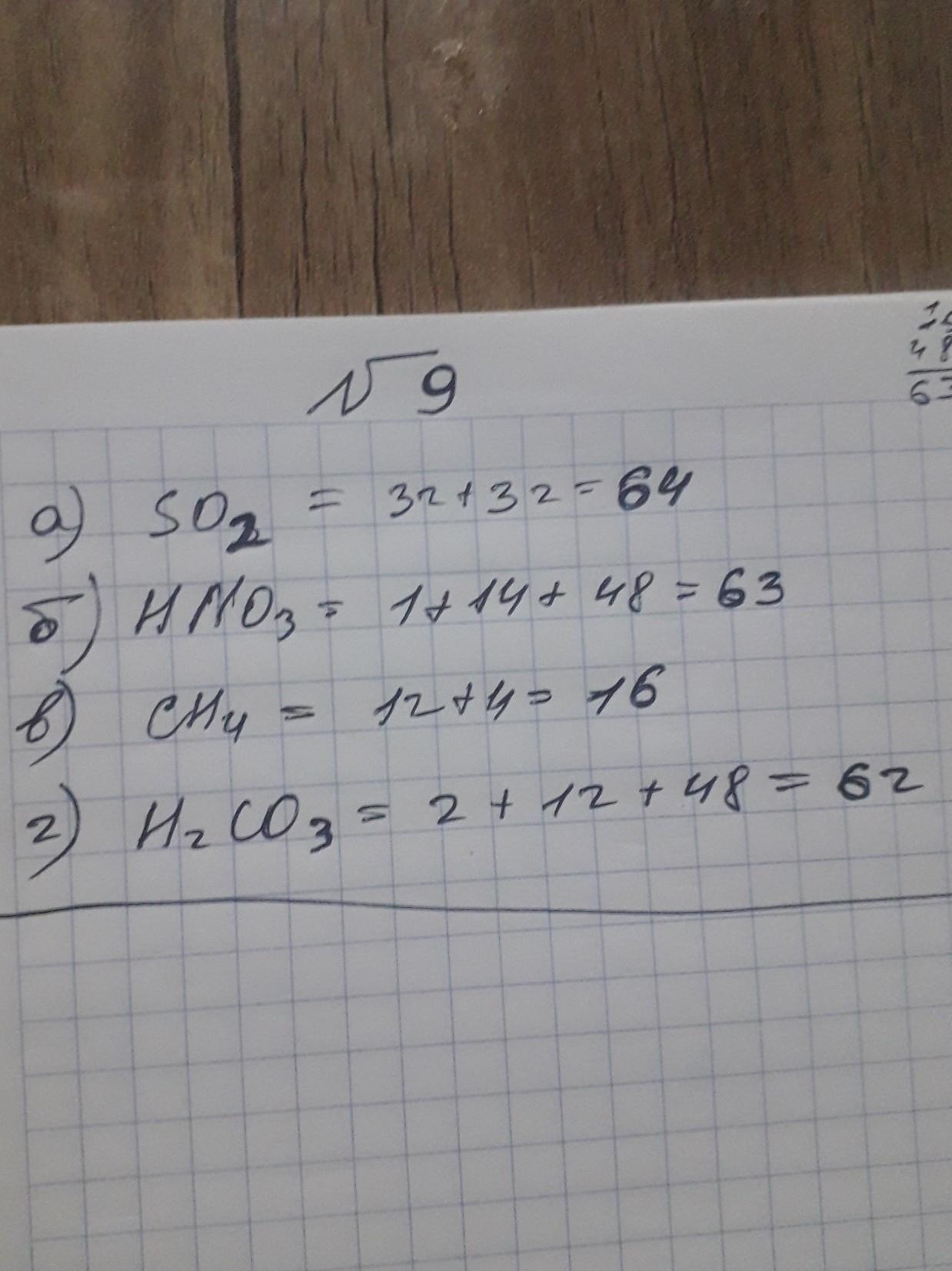 Mr(H2CO3) = 1 * 2 + 12 + 16 * 3 = 62