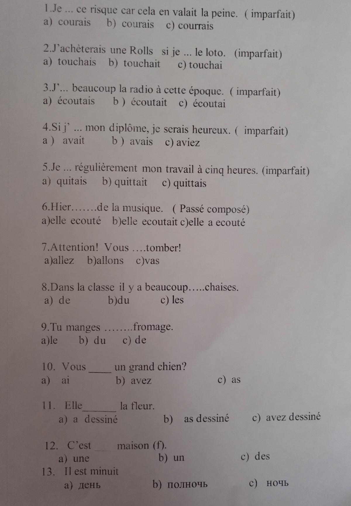 III. Traduisez les fraises:( 3 бали)