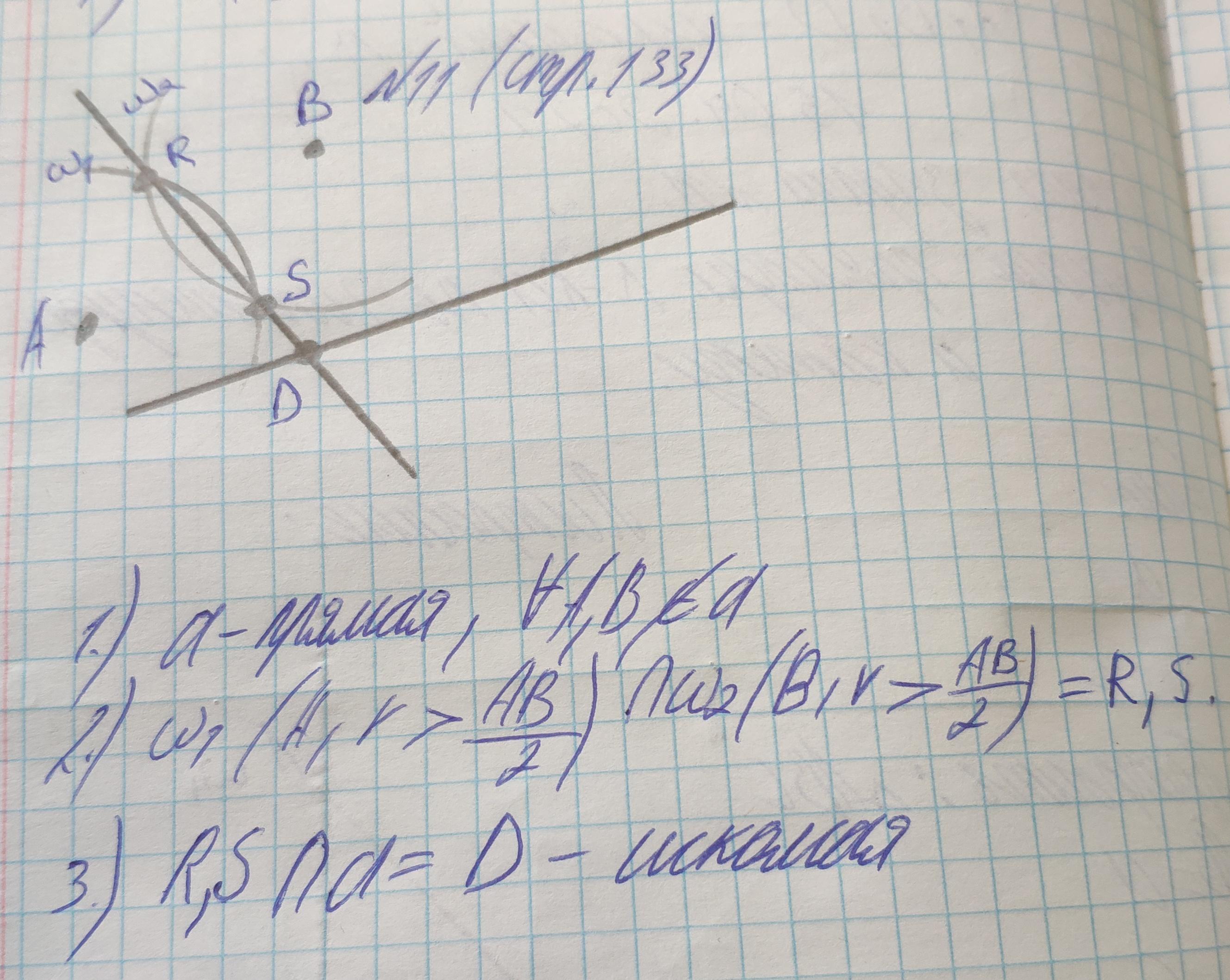 Найдите точку равноудалённую от точек A и B лежащие на прямой а. Книга Узбекистана по геометрии стр. 133 номер 11