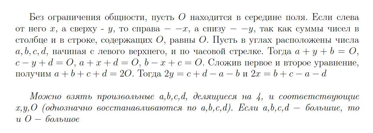 На поле 3х3 в каждую клетку вписано одно целое число, причем среди них было ЧЕТНОЕ число О. В каждой горизонтали и вертикали посчитали сумму написанных чисел и везде она равна О. Какое НАИБОЛЬШЕЕ число О могло быть записано на поле?