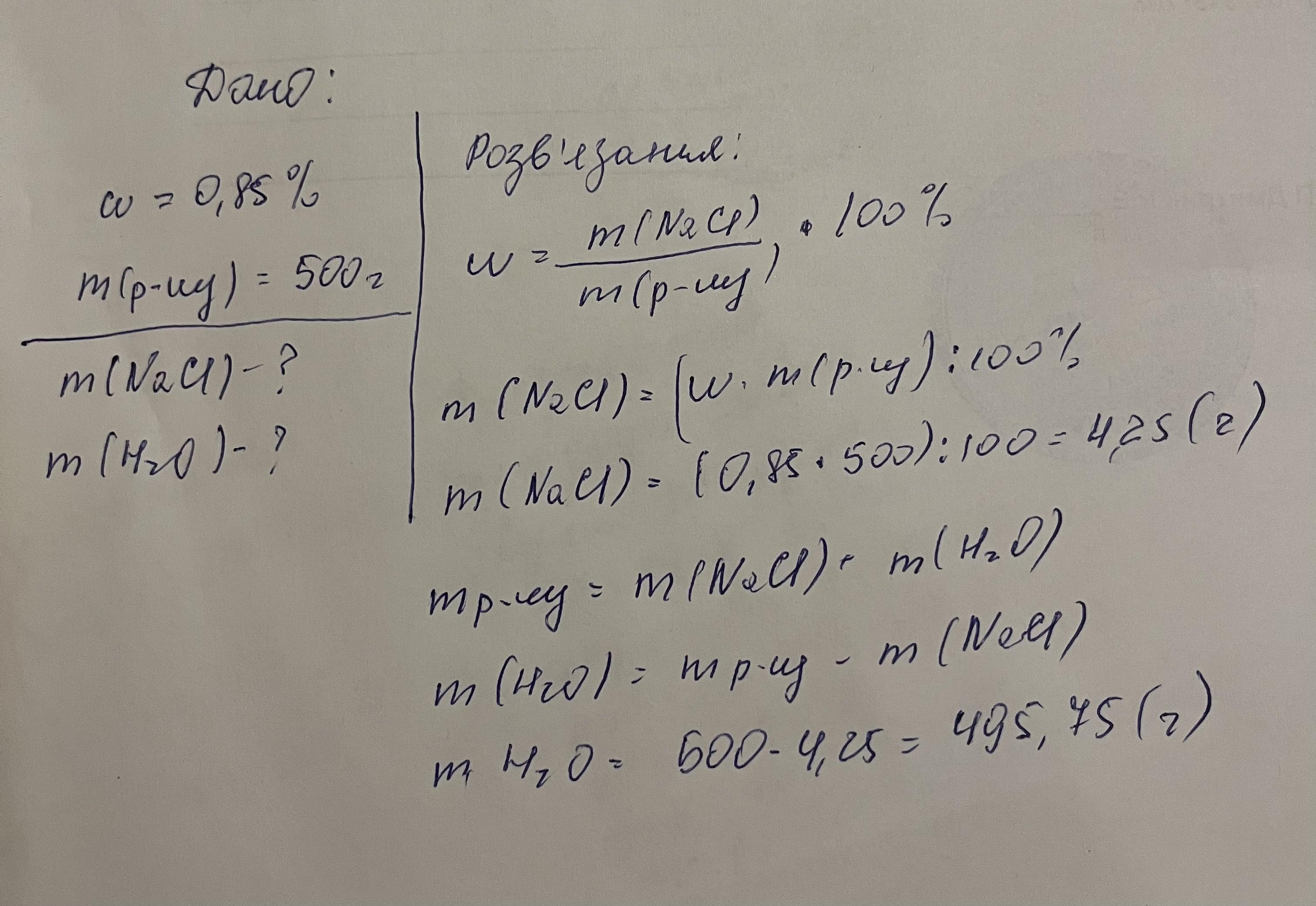 (г) солі в розчині. Яка маса води в цьому розчинi?