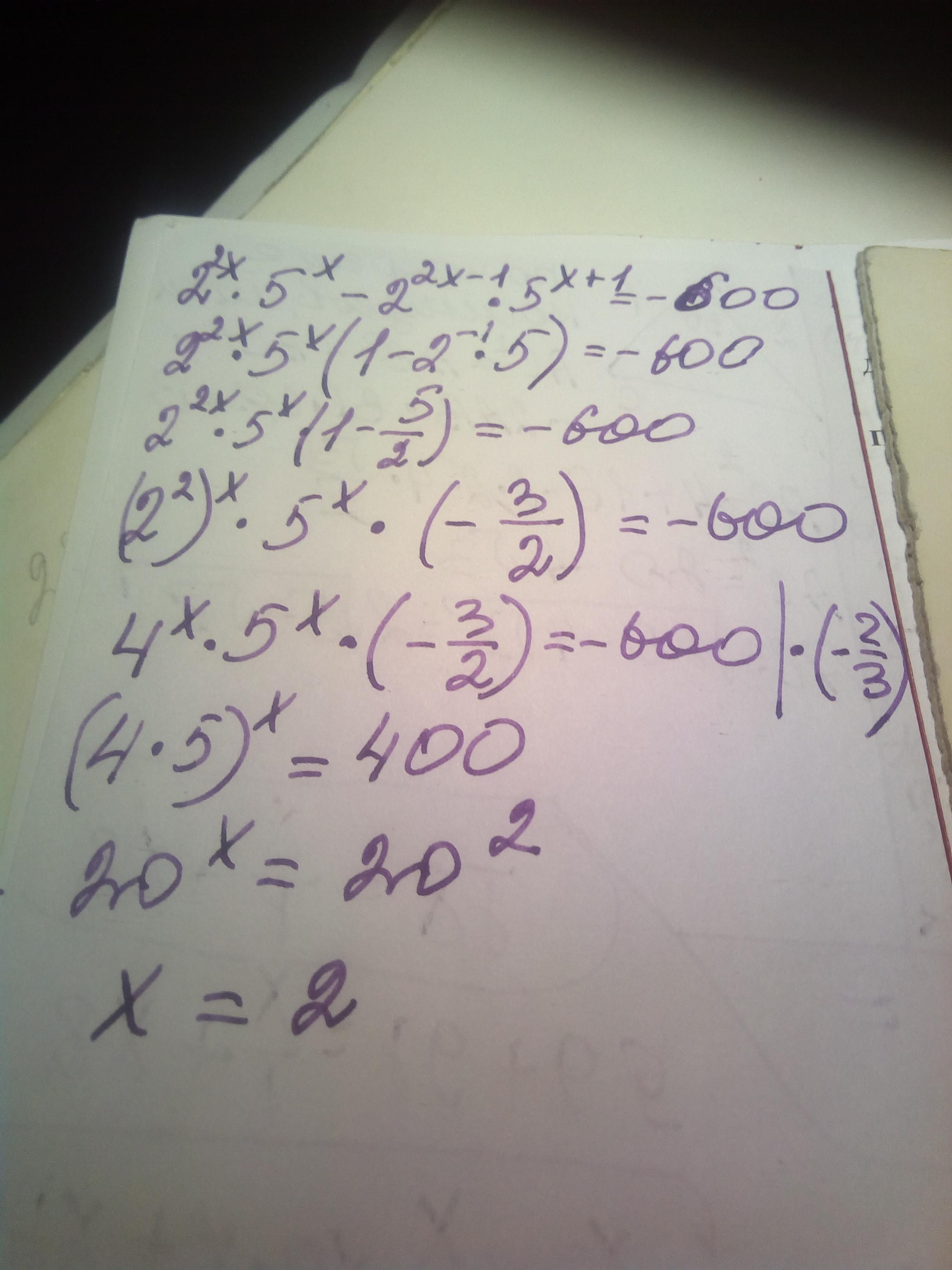 [2^{2x} *5^{x}-2^{2x-1} *5^{x+1} =-600]