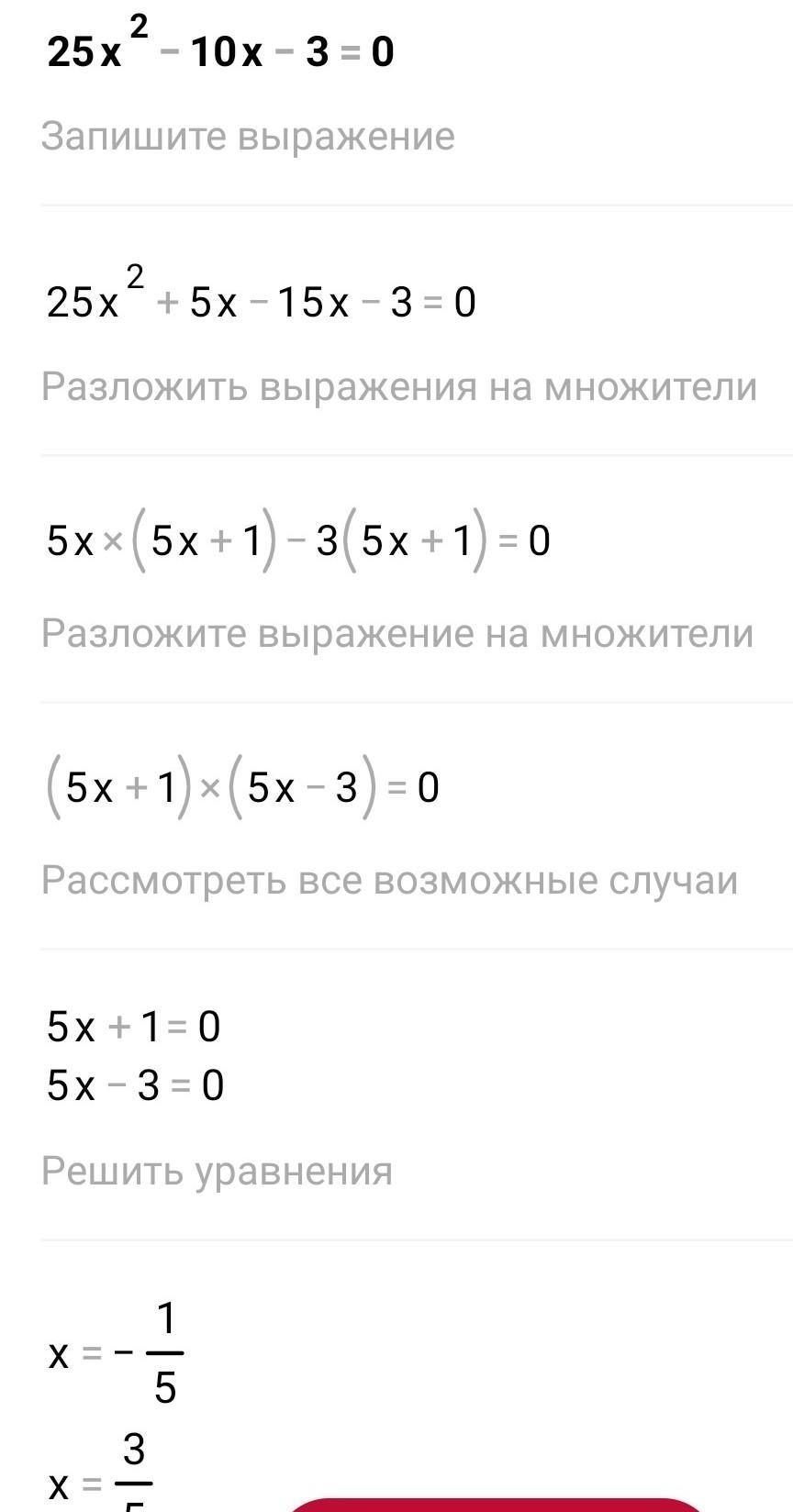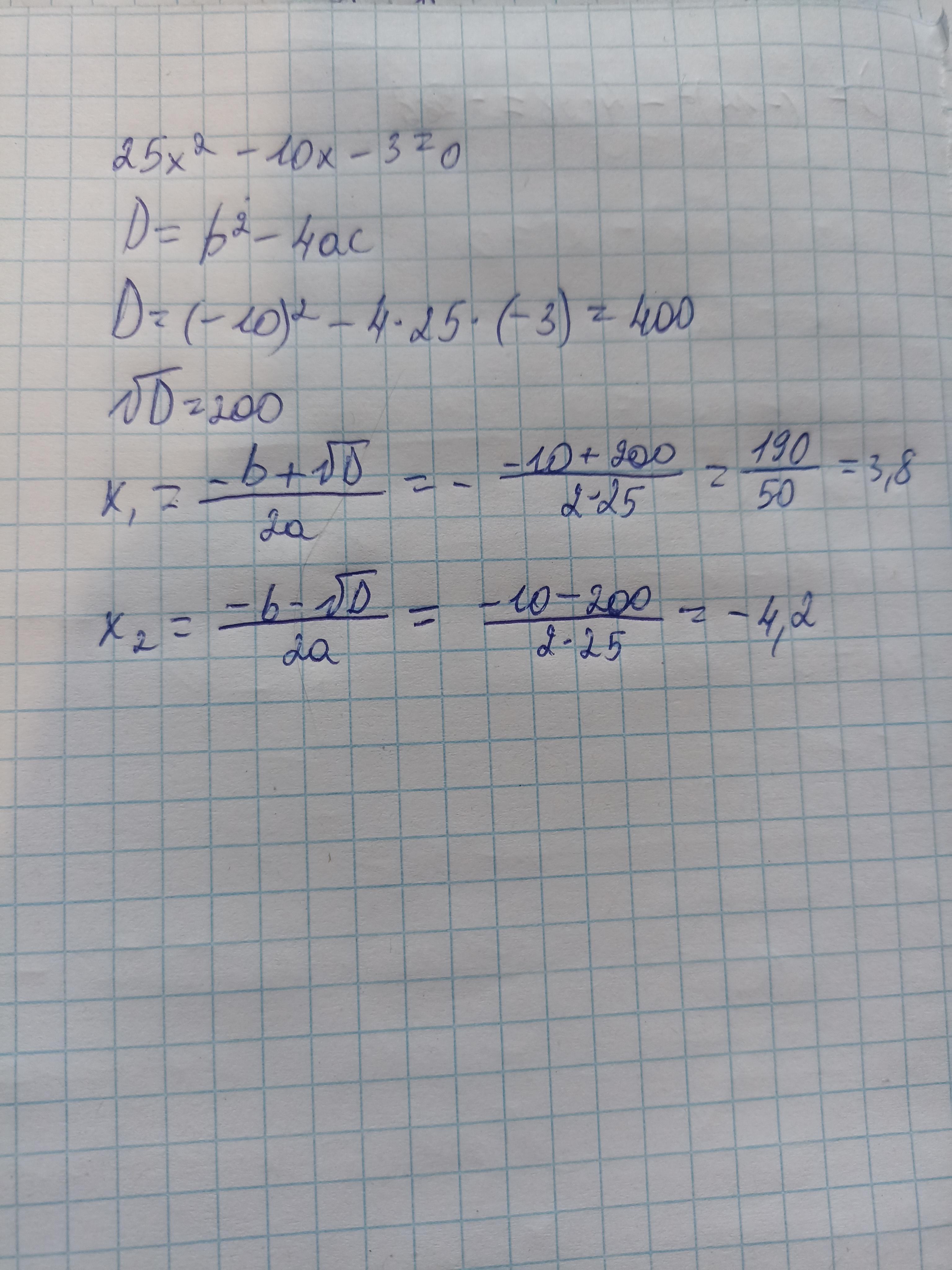 Смотрите фото. х1=-15 х2=35 (это ответ если не понятно)