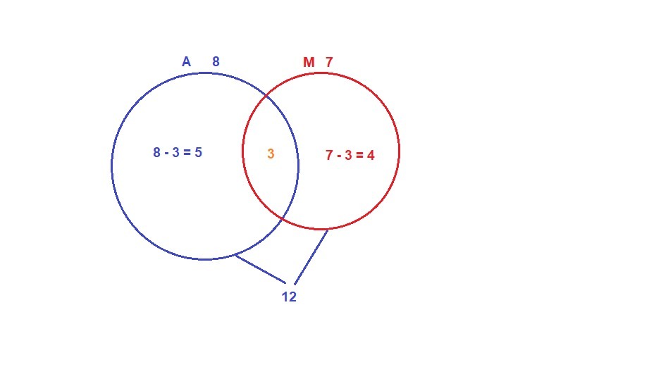 2) 15 — 12 = 3 (чел) — на столько количество желающих посетить хоть что-то превышает количество туристов.
