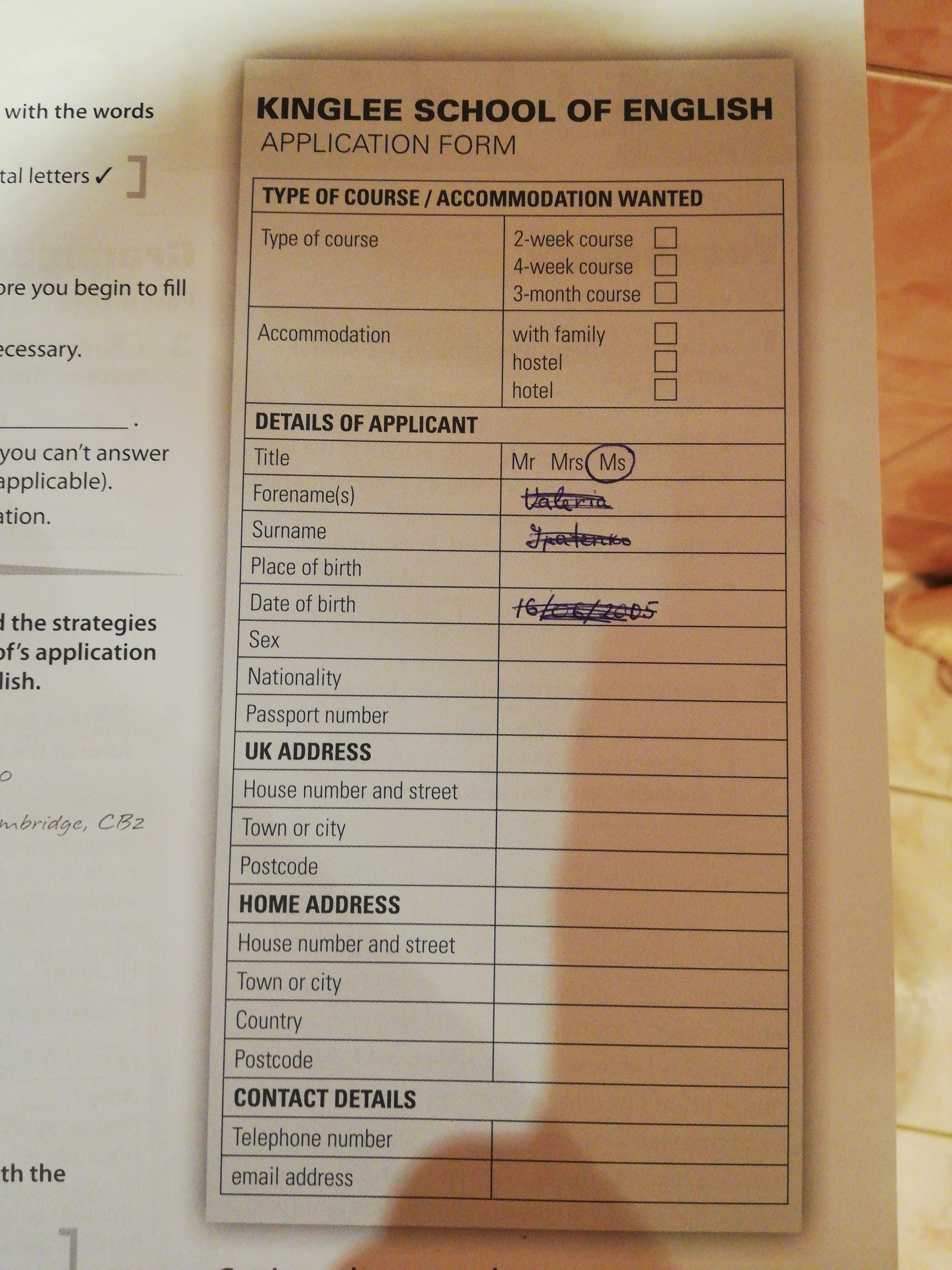 Yulia Mochalkina. Home, 11, June. Russian. У меня тока что нет паспорта.