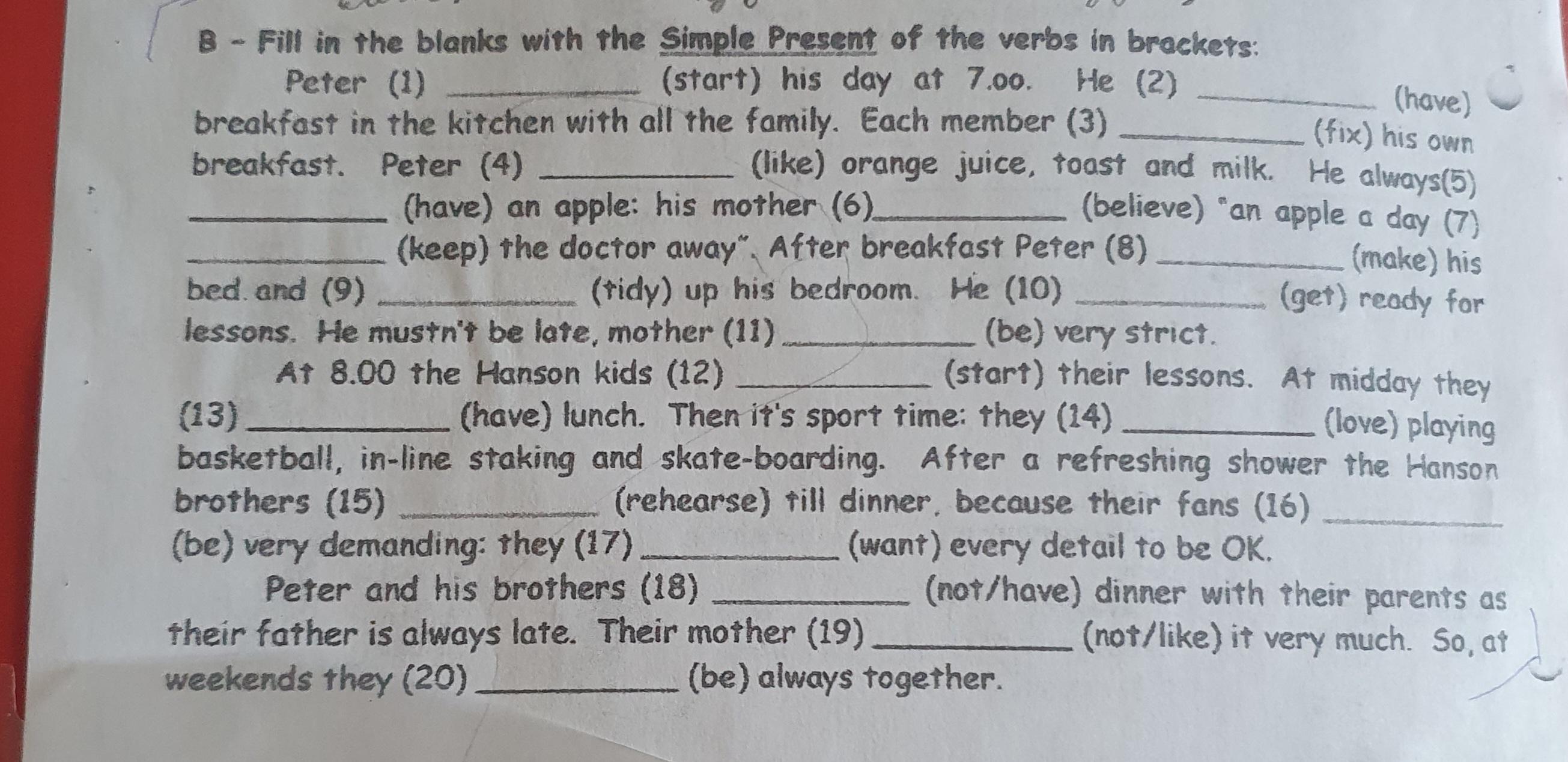 startshasfixeslikeshasbelieveskeepsmakestidiesgetsisstarthaveloverehearsearewantdon’t have doesn’t likeare