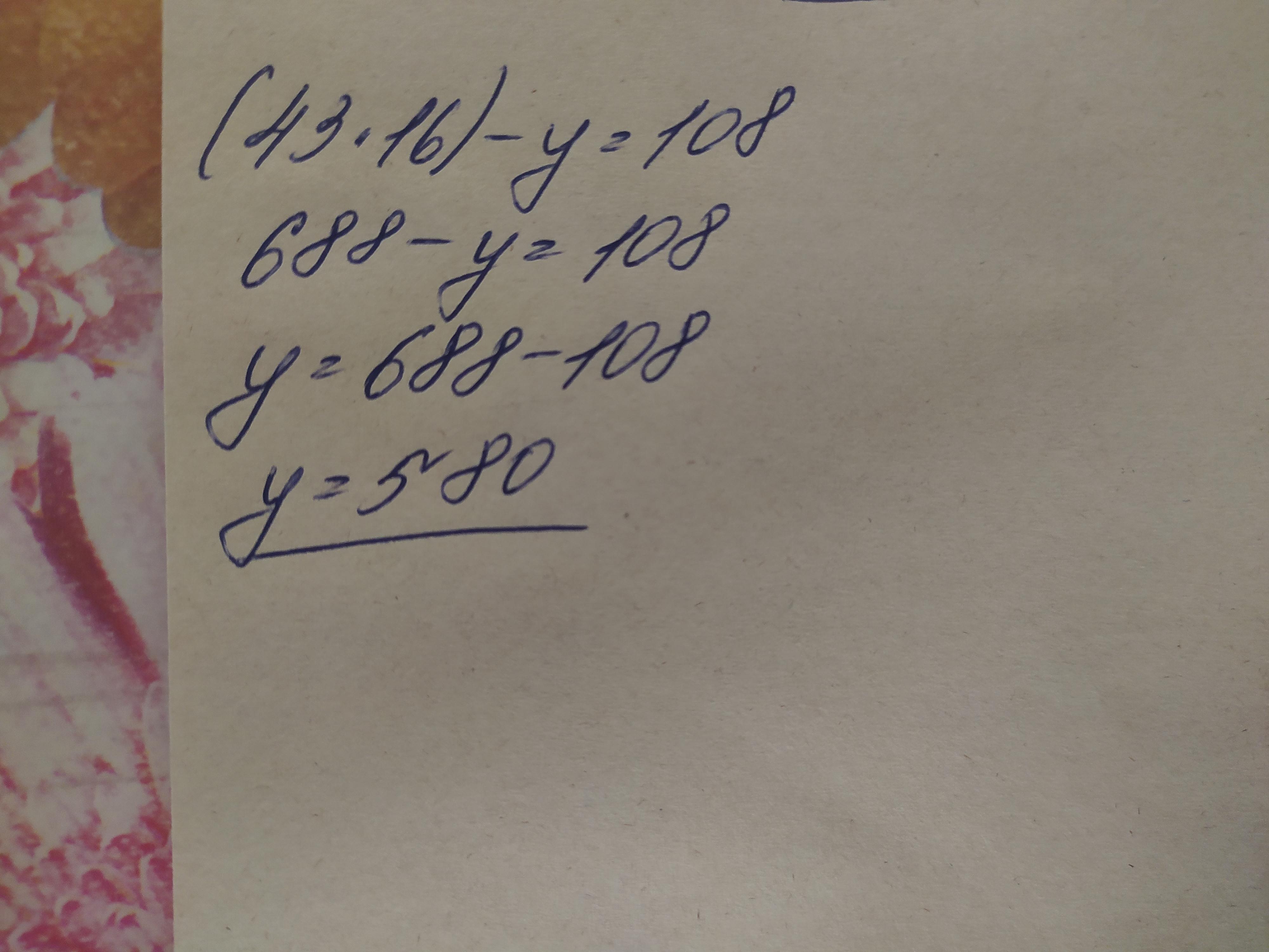 Ответы на вопрос по (43•16)-у=108 Помогите пожалуйста решить это уравнение только как можно сделать в обычной тетрадке, прошу для школьников 1 - 4 класс. Узнайте подробные решения и подходы от других участников. Ответы на этот вопрос уже добавлены. На нашем сайте можно не только задать вопросы, но и стать экспертом, помогая другим пользователям.
