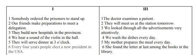 The prisoners were ordered to stand up.Preparations were made to meet a delegation by our friends.New hospitals are being built in the provinces.A sound of the violin was heard in the hall.Dinner will be served at 3 o’clock.A new president is elected every four years in the USA.