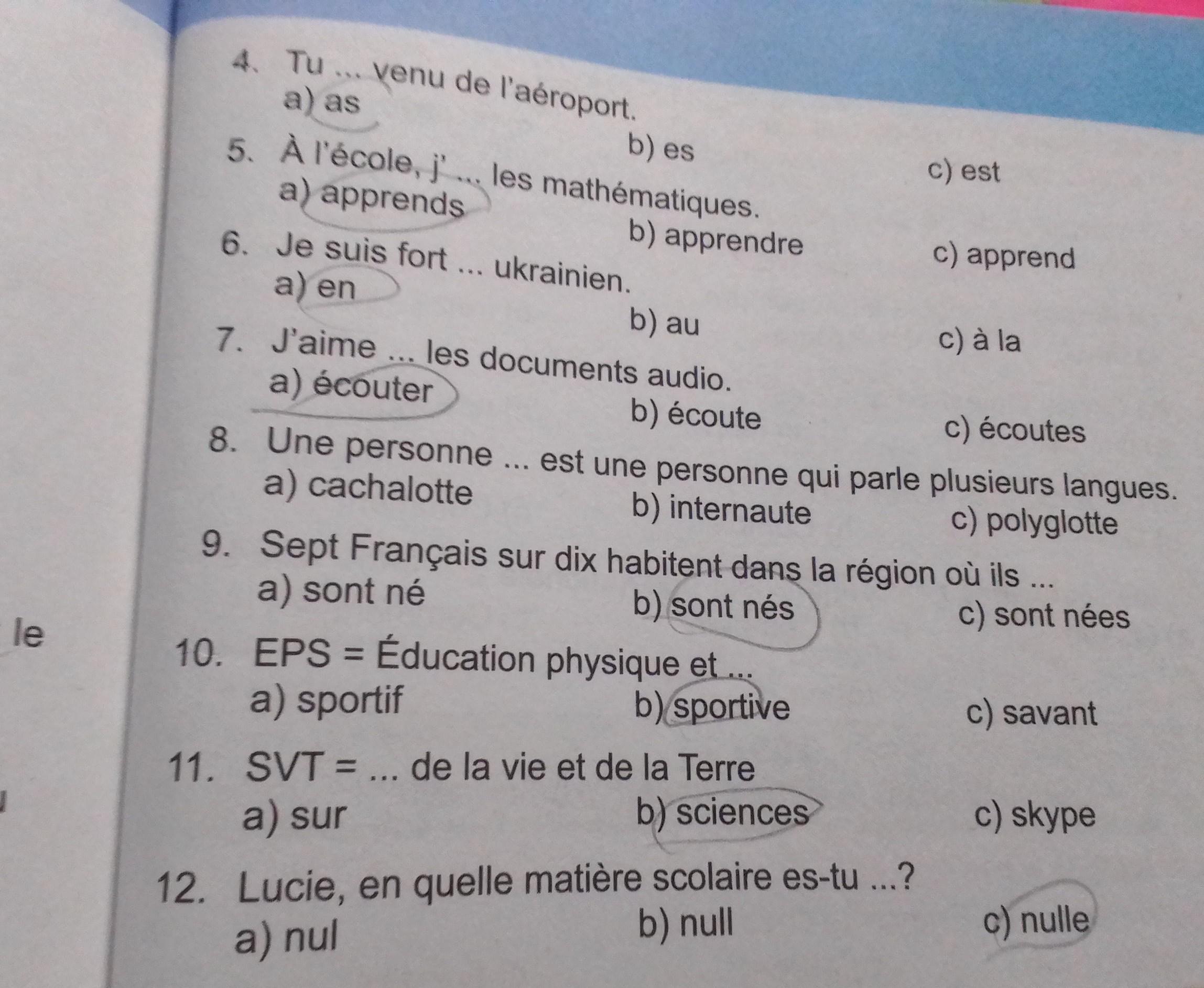 Помогите, пожалуйста, с французским языком, картинка прикреплена.