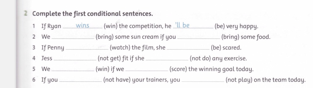 6 If you do (not have) your trainers, you will (not play) on the team today.