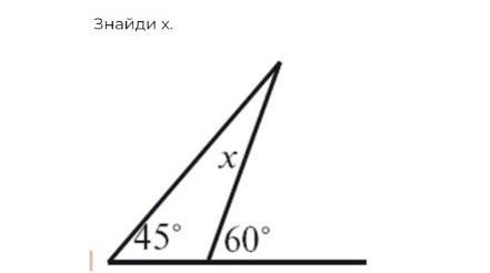 Найдём угол через смежный угол 180-60=120 найдём х 180-(45+120)=15