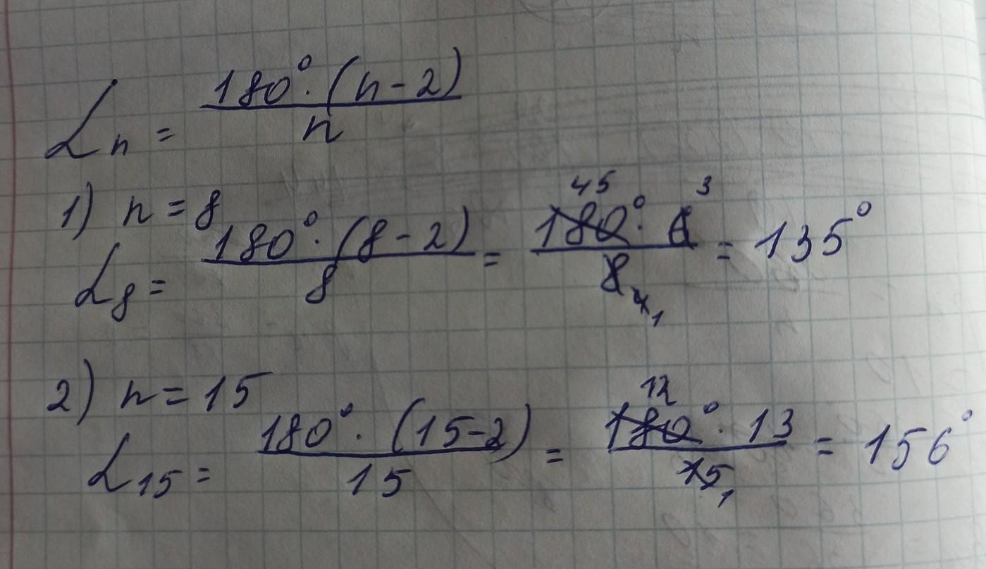 Знайдіть міру кута правильного n-кутника, якщо: 1) n = 8; 2) n= 15
