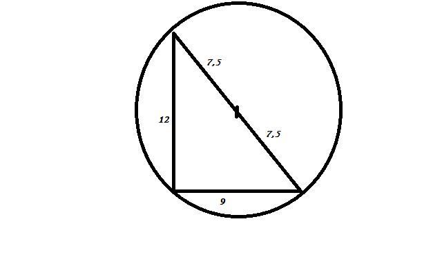 Найдите радиус описанной около прямоугольного треугольника окружности катеты которого равны 12 и 9