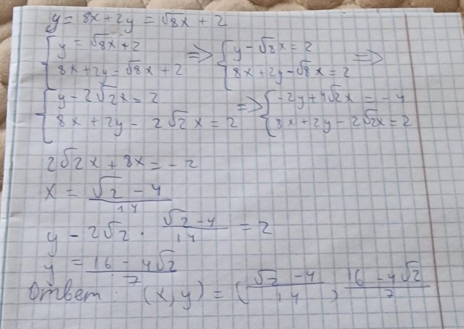 Задача по y = 8x + 2 y = √8x + 2 для школьников студенческий? Читайте обсуждения и ответы на тему Математика. Ответы на этот вопрос уже есть. Присоединяйтесь к нам, задавайте вопросы и делитесь своими знаниями с другими участниками.