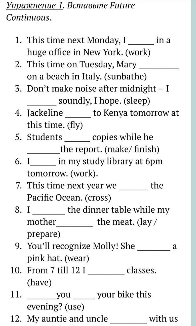 1. This time next Monday, I’ll be working in a huge office in New York.