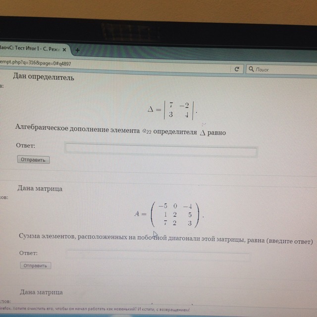 Получите помощь с решением задачи по Две определитель. Дана матрица для студенческий. В разделе обсуждений вы найдете различные подходы к решению задачи по Математика. Ответы на этот вопрос уже добавлены. Наш сайт позволяет вам задавать вопросы и получать ответы от экспертов и других школьников.