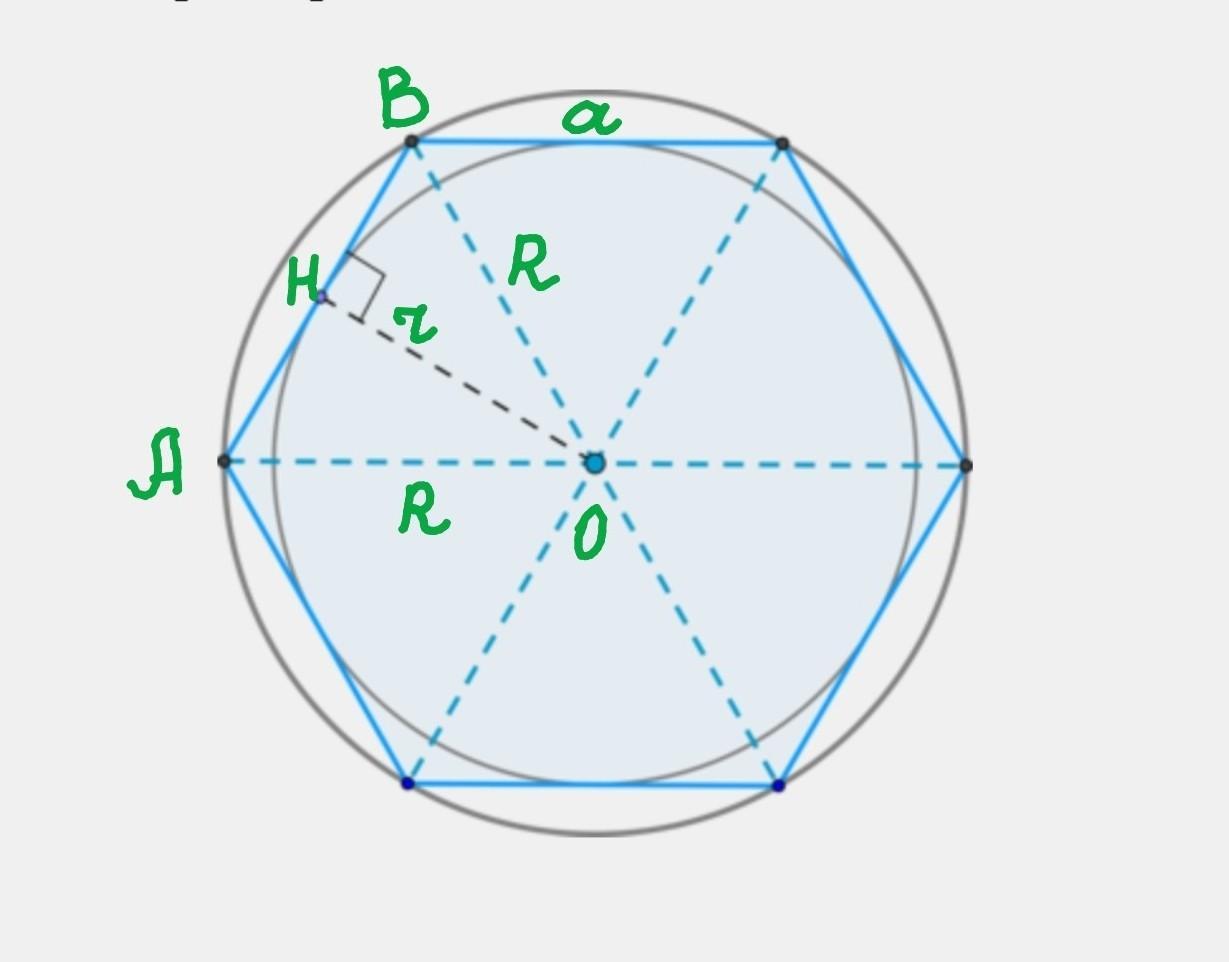 Таким образом, радиус вписанной окружности в правильном шестиугольнике равен: