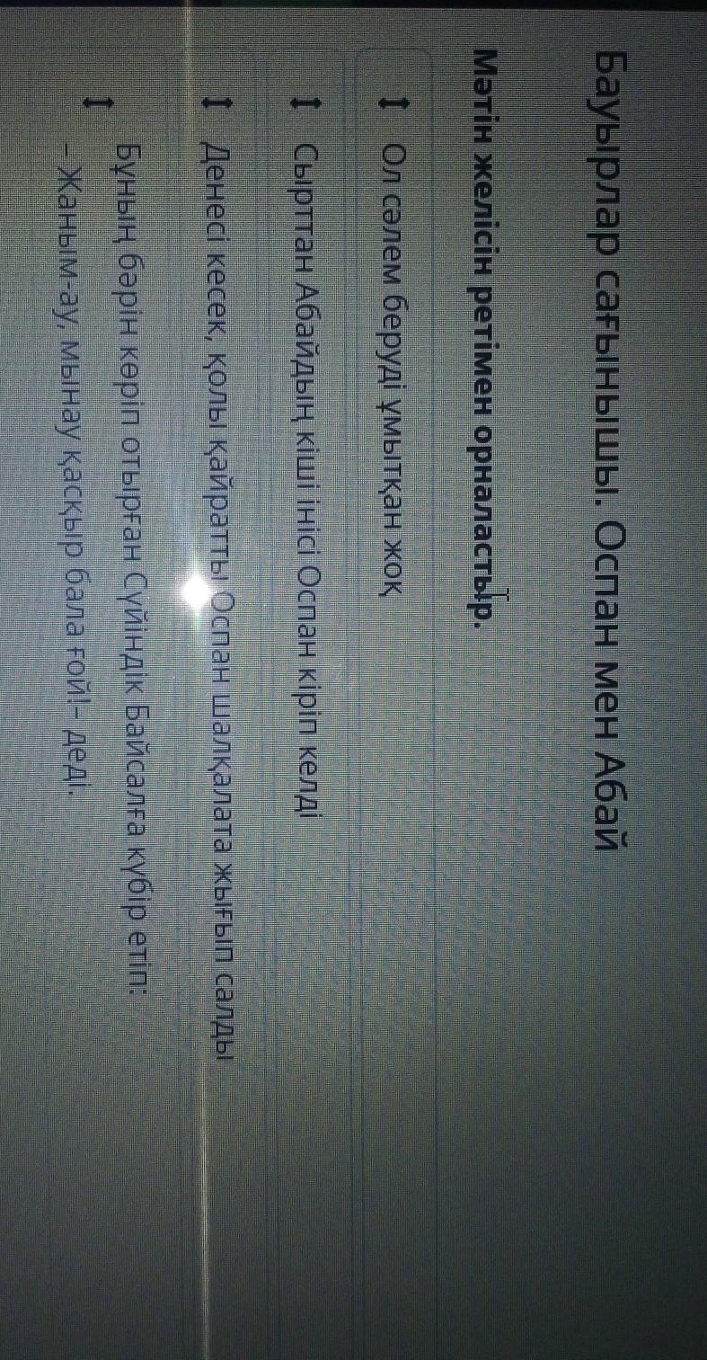 Оспанға арналған мінездеменің қорытынды бөліміндегі сөйлемдерді ретімен орналастыр.