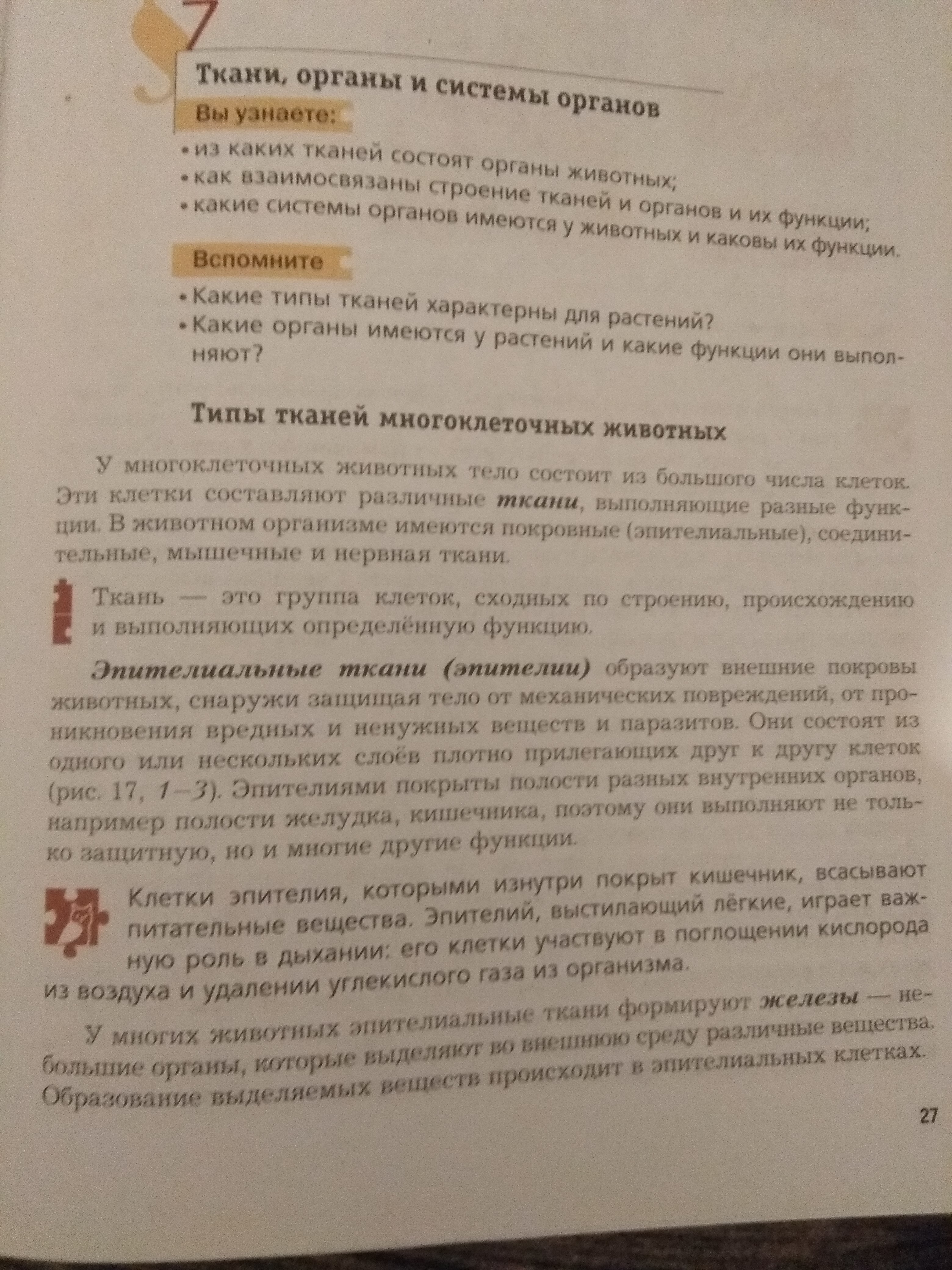 Эпителиальная ткань (эпителий) защищает от механический повреждений, вредных веществ и паразитов. Она выстилает полости различных органов: желудок, кишечник и тд., выполняя и другие функции, кроме защитной. Например, клетки эпителия всасывают питательные вещества в кишечнике.