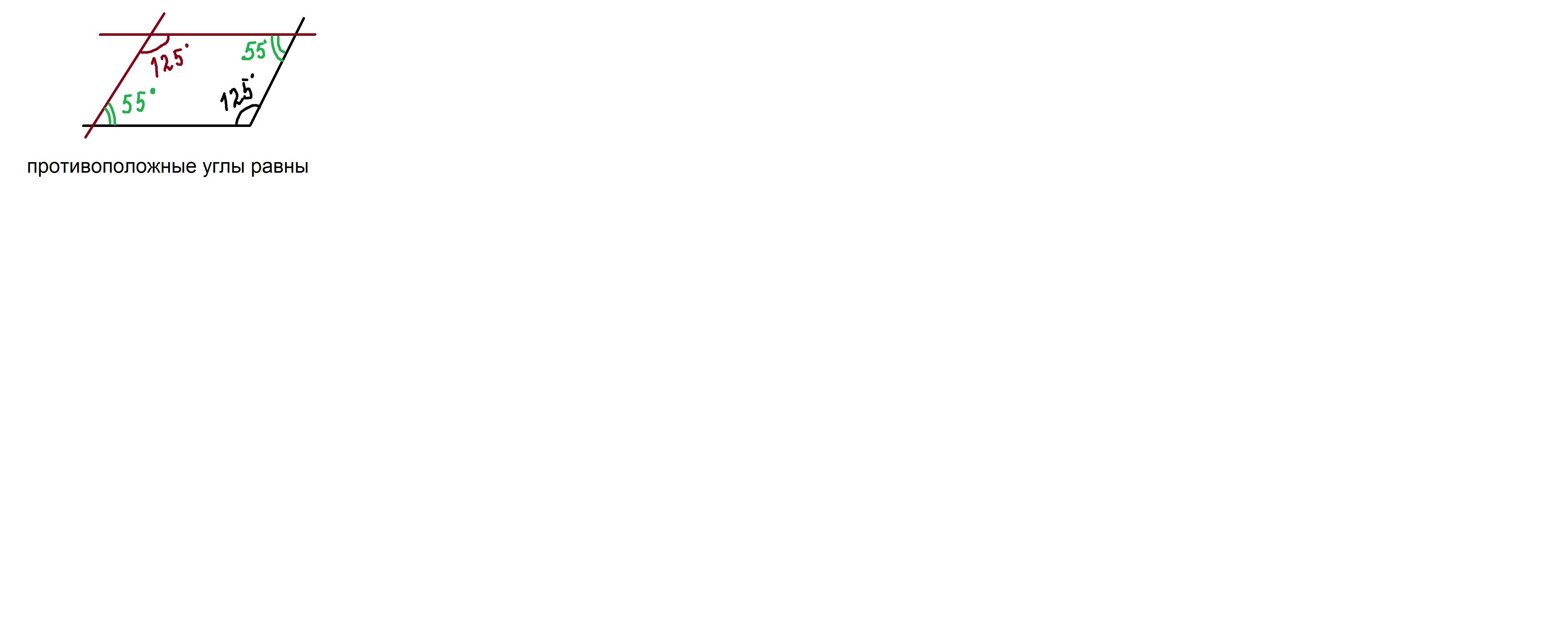 противоположные углы равны. сумма смежных углов равна 180%. углы равны 55° 125° 55°