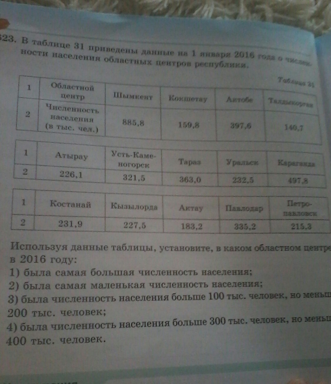 1) Самая большая численность — 885,8 тыс.чел. — Шымкент.