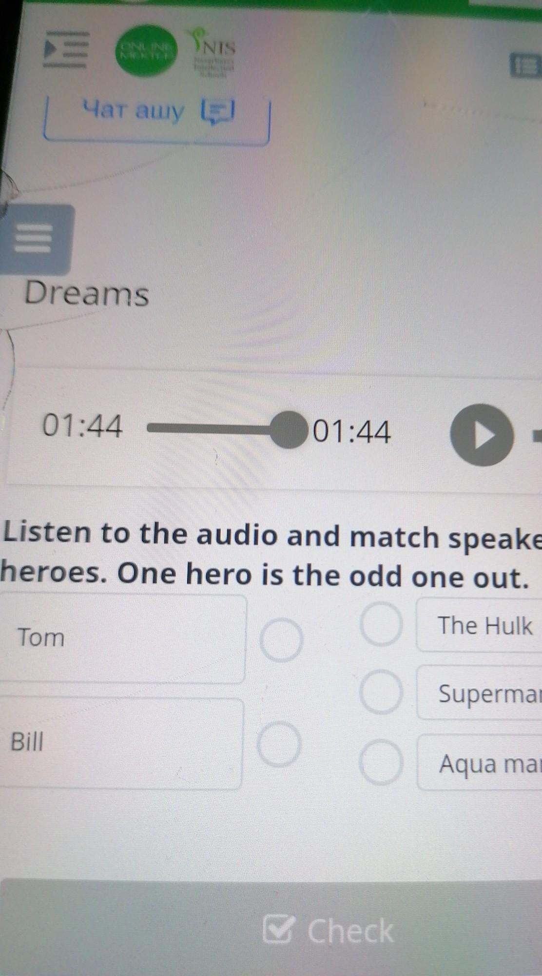 Решение задачи по Listen to the audio and match speakers with heroes. One hero is the odd one out. > SETELTE The Hulk Tom Superman Bill Aqua man check для школьников 1 - 4 класс. Узнайте, как решить задачу, читайте обсуждения и ответы на тему Математика. Ответы на этот вопрос уже добавлены. Наш сайт предоставляет вам возможность задавать вопросы и помогать другим стать лучше.