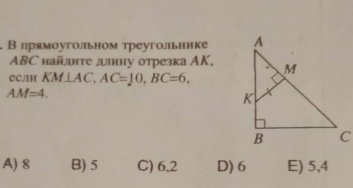 Треугольник АКМ подобен треугольнику АВС по трем углам.