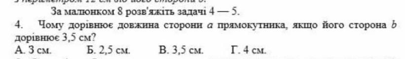 Если сторона b будет равна 3,5 см, то, согласно рисунку, сторона а будет равна 2,5 см.