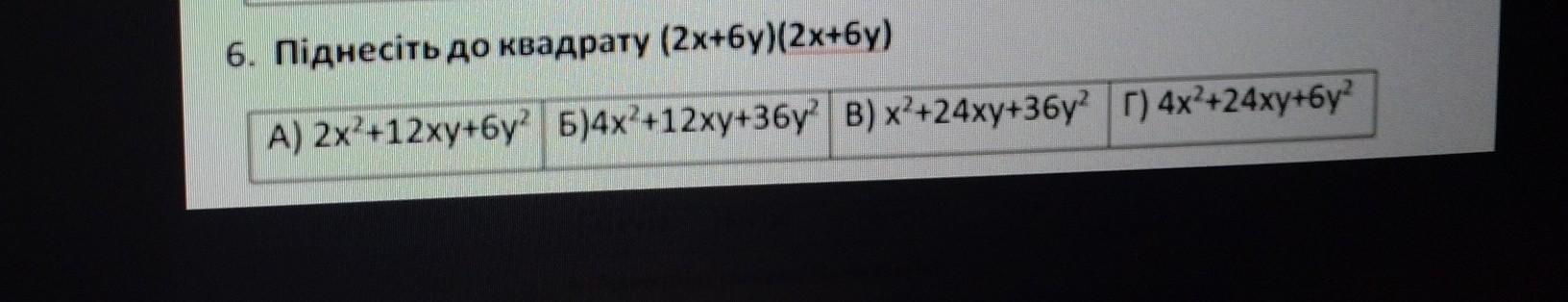 Отже, ( (2x+6y)^2 = 4x^2 + 24xy + 36y^2 ).