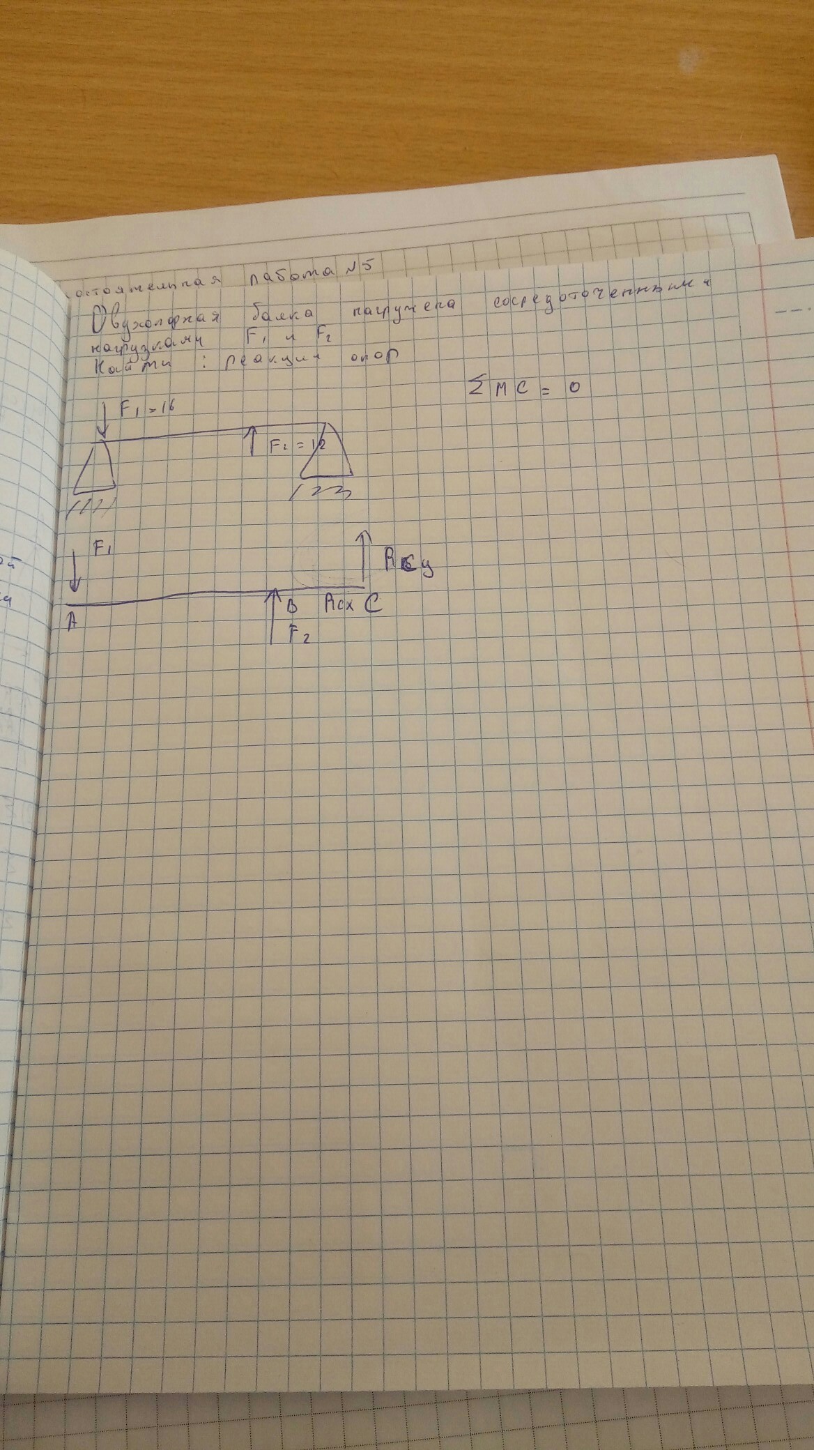 Балка на опорах лежит свободно, без трения (?), реакции Ra, Rc ↑, Rcx=0 (Ra дорисуй)