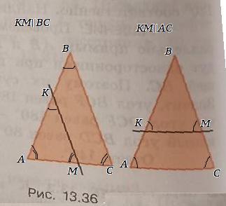 Угол ВКМ=углу ВАС, угол ВМК=углу ВСА ( соответственные углы при пересечении параллельных прямых секущей равны). Угол ВАС=ВСА ( дано), следовательно, угол ВКМ=углу ВМК. ∆ ВКМ — равнобедренный.