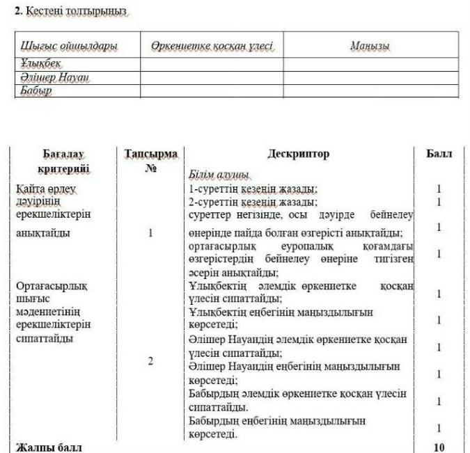 Ответ:қосқан үлестері: Ұлықбек-жаңа астрономиялық кестелер