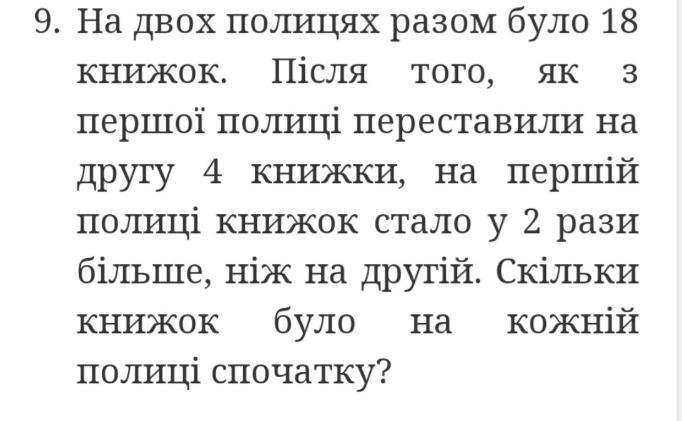 НУ ЕСЛИ Я ПРАВИЛЬНО ПОНЯЛ ЗАДАЧУ ТО 18:2=9 спочатку було на кожній полиці
