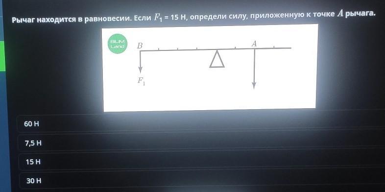 Ответы на задачу по Рычаг находится в равновесии. Если F¹ = 15 H, определи силу, приложенную к точке А рычага. 60 H 75H 15H 30 Н дам 15 баллов и лучший ответ для школьников 5 - 9 класс. Прочитайте множественные решения и обсудите подходы с участниками. Ответы на этот вопрос уже есть. На нашем сайте вы можете задать свой вопрос и стать частью сообщества экспертов, помогая другим.