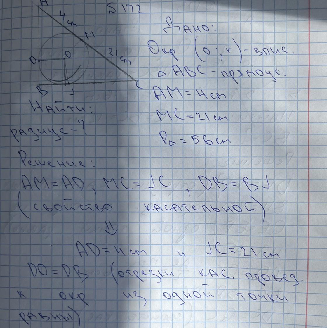 Поскольку четырехугольник DOJB — это квадрат, то радиус окружности — равен длине стороны квадрата (т.е. DB).