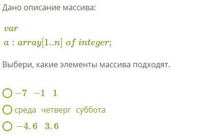 тип Integer — целые числа. array of Integer -> Массив элементов типа integer. То бишь массив целых чисел.