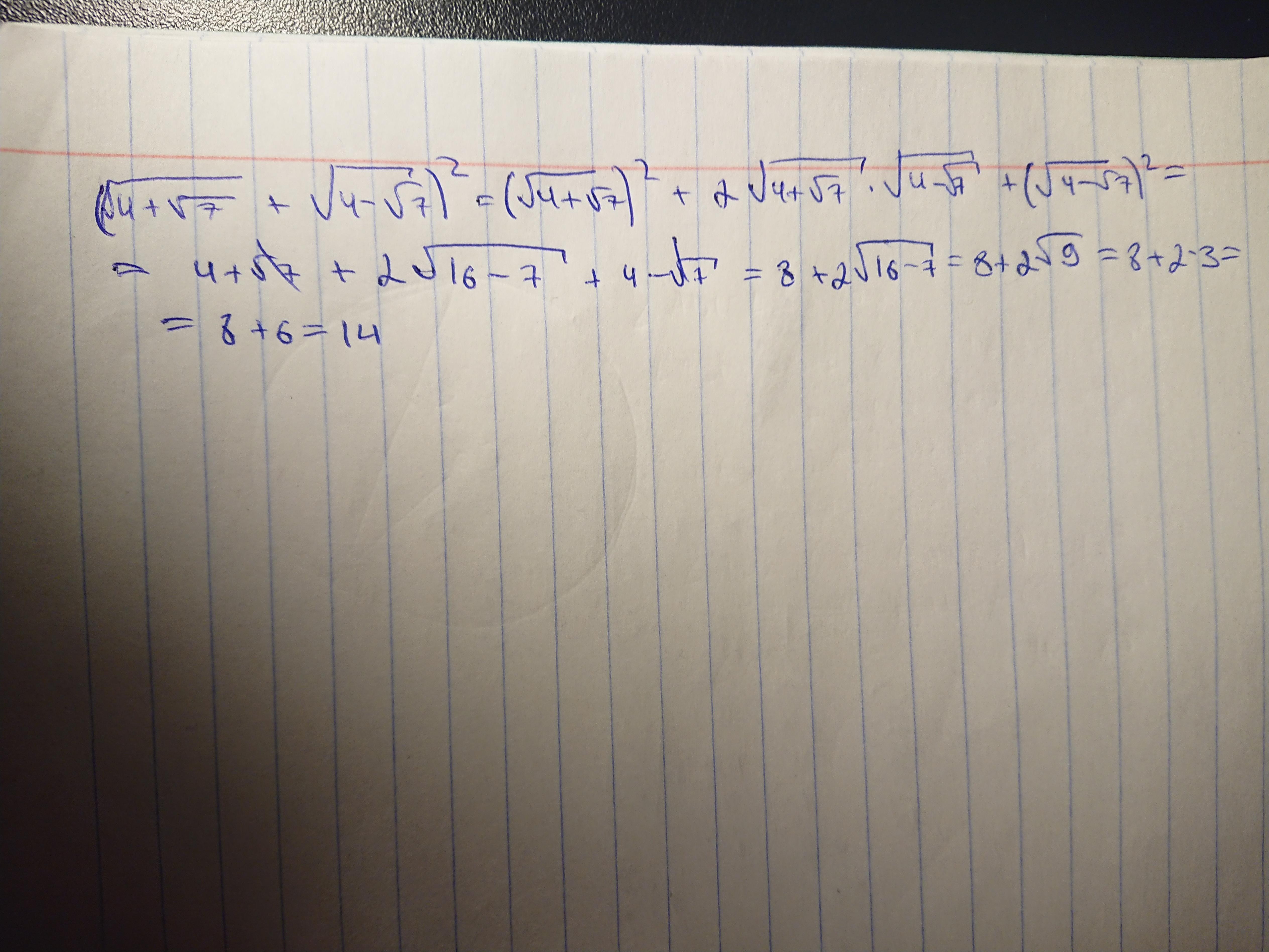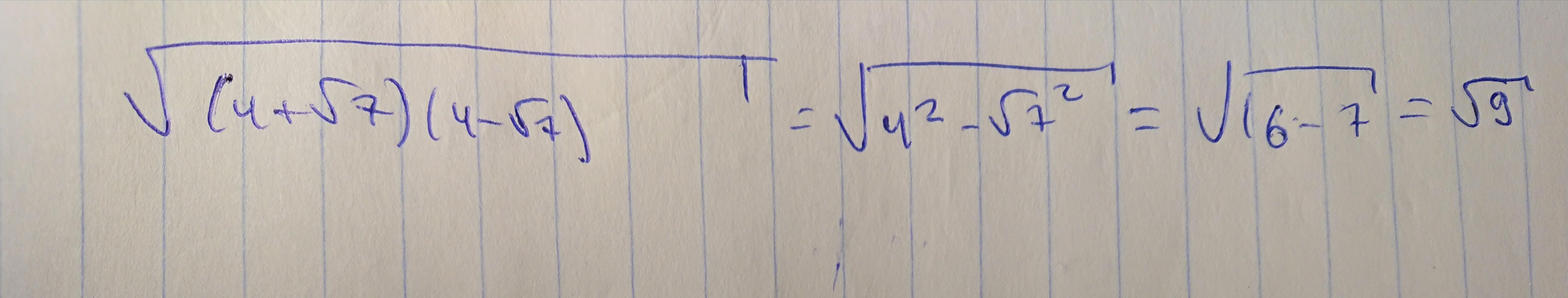 Небольшое действие пропущено (4+√7)(4-√7) по формуле разности квадратов равно 4^2-√7^2=16-7