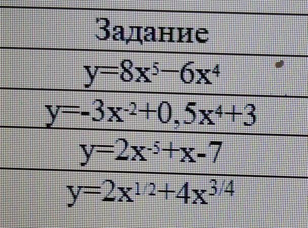 y’ = (8x⁵ -6x⁴)’ = 8*5x⁴ -6*4x³ = 40x⁴ — 24x³