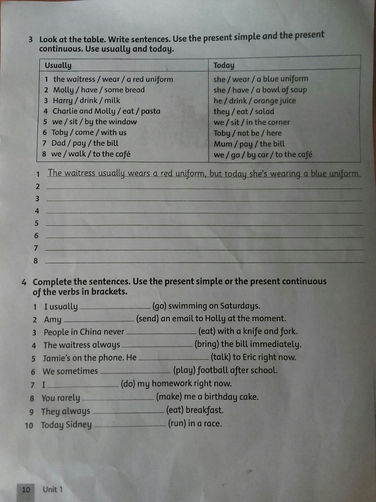 3.harry usually drinks a milk , but today he is drinking orange juice