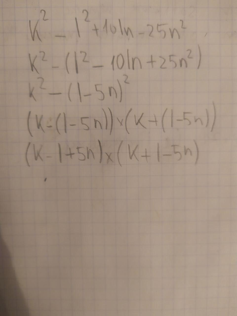 Нужен ответ на задачу по k^2-l^2+10ln-25n^2= Решите? Прочитайте решения и обсудите их с другими участниками. Задача относится к Алгебра и поможет вам разобраться в k^2-l^2+10ln-25n^2= Решите для школьников студенческий. Ответы на этот вопрос уже добавлены. Присоединяйтесь к нашему сообществу, задавайте вопросы и получайте ответы от экспертов!