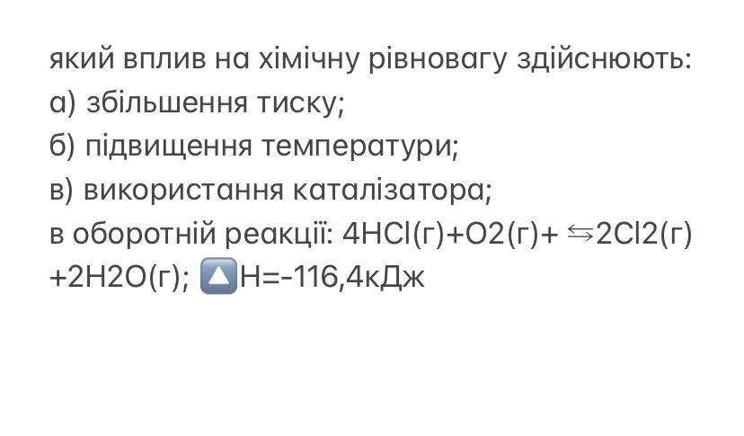 а) Збільшення тиску зазвичай збільшує кількість молекул у системі, що призводить до зміни рівноваги у напрямку зменшення об’єму газів.