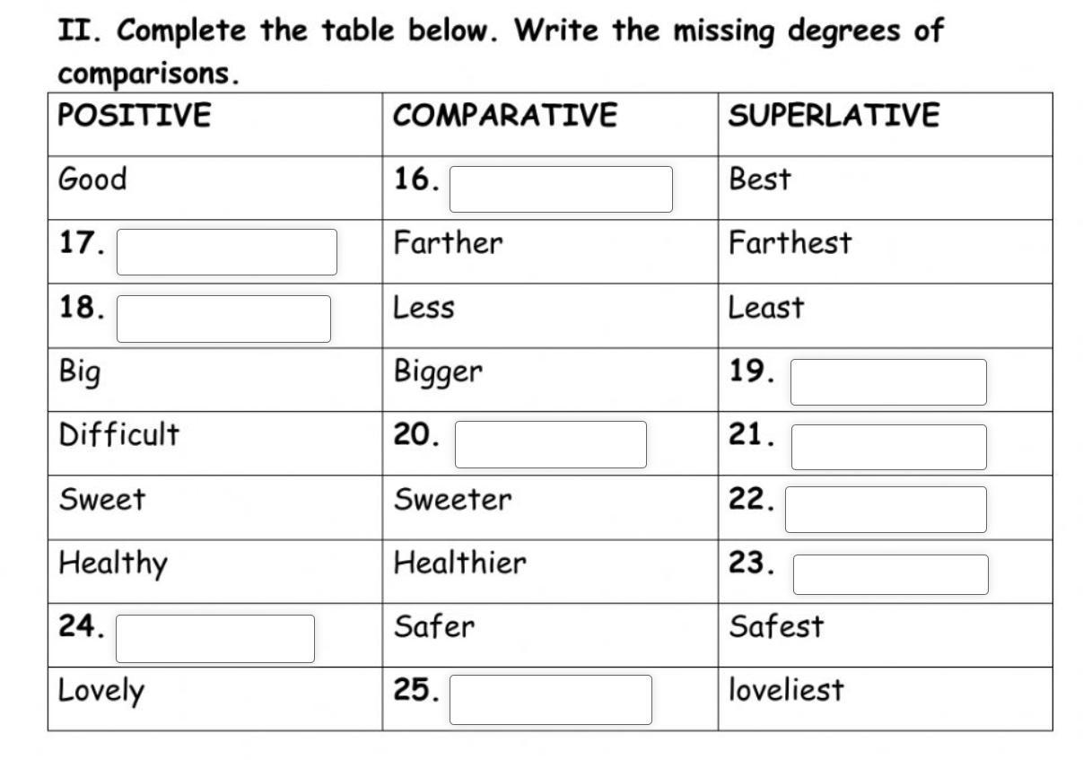 Task 4. Write comparative and superlative degrees of adjectives. (Напиши сравнительную и превосходную степени прилагательных.)