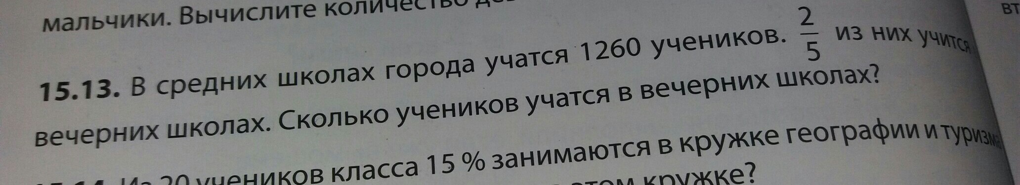Всего в школе учатся 1260 учеников.а для того чтобы определить 2/5 , нужно 1260/5 и умножить на 2. И ответ получится 504.