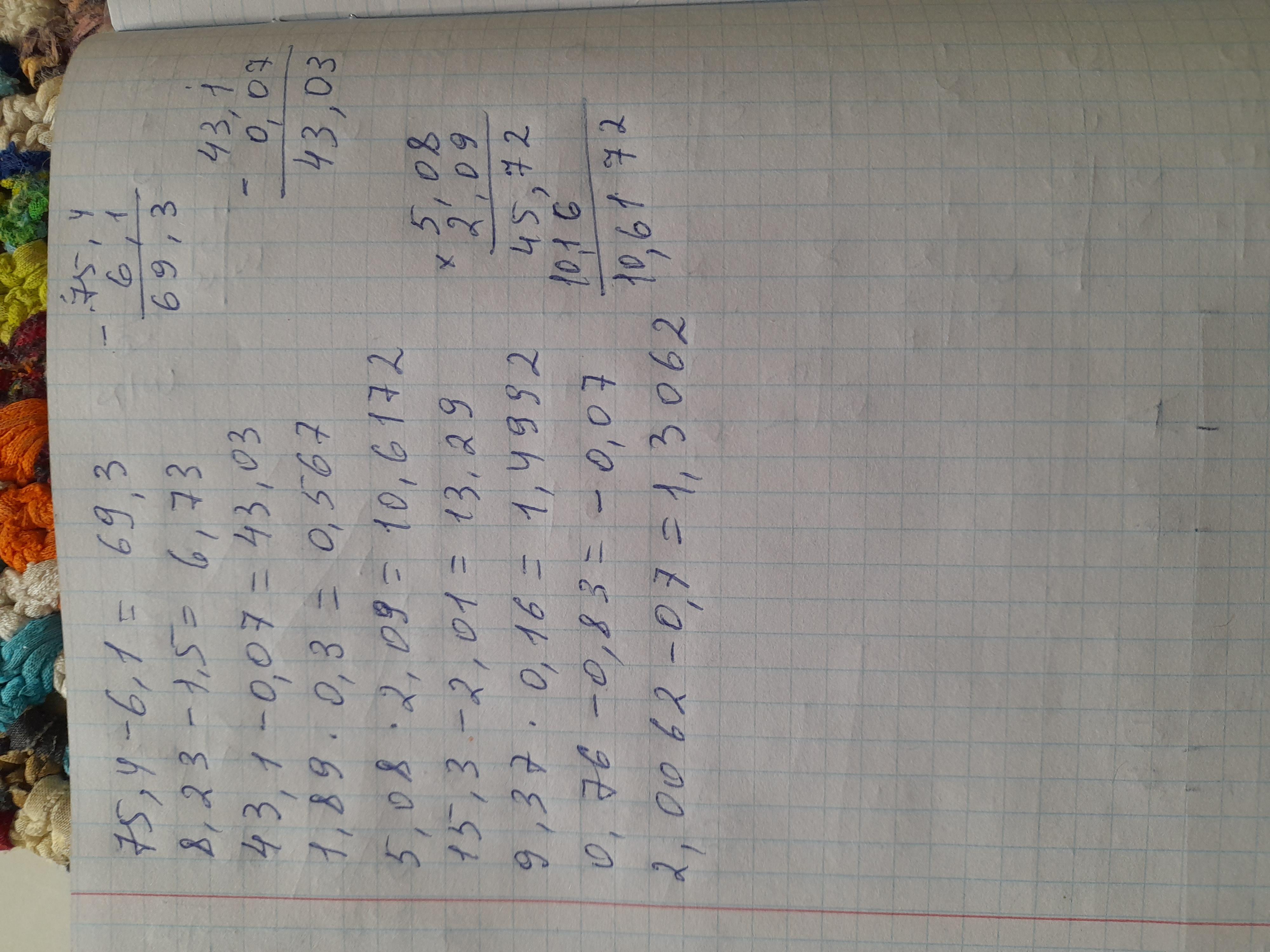 Ищете решение задачи по наиди решенис Вычисли: a) 75, 4-6,1; 6) 8,23 - 1,5; B) 43,1 - 0,07; r) 1,89 . 0,3; д) 5,08 . 2,09; e) 15,3 - 2,01; *) 9,37 0,16; 3) 0,76 -0,83; и) 2,0062 - 0,7; в столбик срочно для 1 - 4 класс? На странице вы найдете не только подробное объяснение задачи, но и обсуждения от других участников. Ответы на этот вопрос уже добавлены. Этот вопрос относится к Математика, и помогает разобраться в теме наиди решенис Вычисли: a) 75, 4-6,1; 6) 8,23 - 1,5; B) 43,1 - 0,07; r) 1,89 . 0,3; д) 5,08 . 2,09; e) 15,3 - 2,01; *) 9,37 0,16; 3) 0,76 -0,83; и) 2,0062 - 0,7; в столбик срочно. На нашем сайте вы можете задать собственный вопрос и получить помощь от опытных экспертов.
